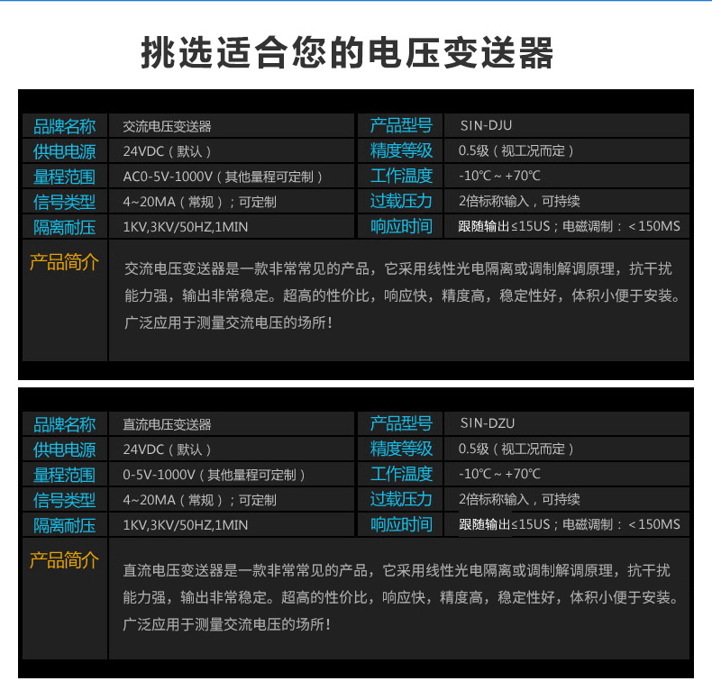 電壓變送器是一種將被測(cè)交流電壓、直流電壓、脈沖電壓轉(zhuǎn)換成按線性比例輸出直流電壓或直流電流并隔離輸出模擬信號(hào)或數(shù)字信號(hào)的裝置。
