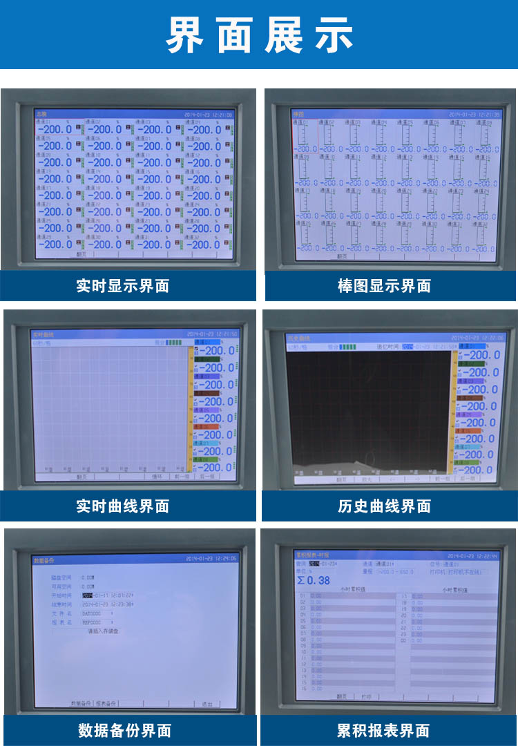 無紙記錄儀是將采集的數(shù)據(jù)/運算數(shù)據(jù)以時間為基軸記錄在儀器內(nèi)部的存儲系統(tǒng)中,無消耗任何常用的記錄設(shè)施,如:紙張、筆墨。記錄在儀器內(nèi)部的存儲數(shù)據(jù),通過運算、模擬后顯示在液晶屏。常用顯示用液晶屏比較廣泛。在液晶屏屏幕上,可以顯示數(shù)字顯示、棒圖顯示、曲線顯示、報警列表等。無紙記錄儀采集的數(shù)據(jù),常用的有:溫度、壓力、流量、液位、電壓、電流、濕度、頻率、振動、轉(zhuǎn)速等。